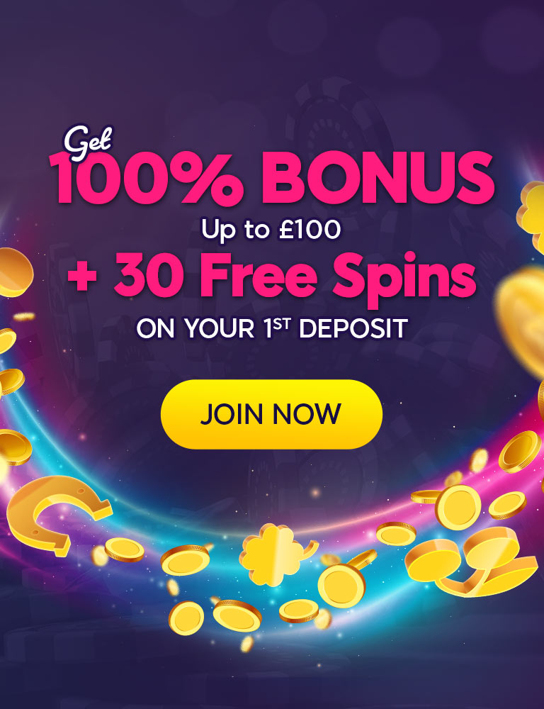 Further T&Cs apply. 1st depositors only. Min £10 deposit, get 100% Bonus (max £100) + 30 Free Spins [FS] on specific slots. Must be claimed within 7 days; FS valid for 7 days once claimed. FS wins granted in bonus after all FS are used. Bonus wins capped at £400 exc. JP wins. Bonus valid on specific games only. Wagering req. apply: 30x bonus funds (vary by game); Further T&Cs apply